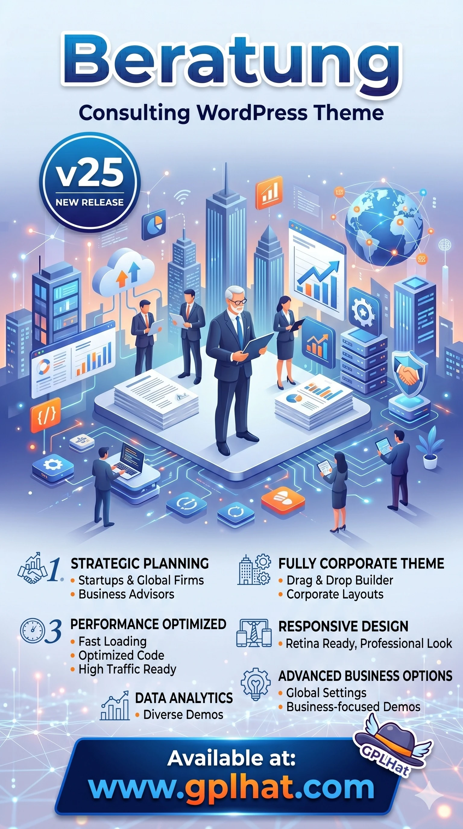 Beratung - Consulting WordPress Theme v25 helps you create a professional website for consulting and corporate services. It includes multiple homepage layouts, service pages, case studies, and team sections to showcase your business effectively.