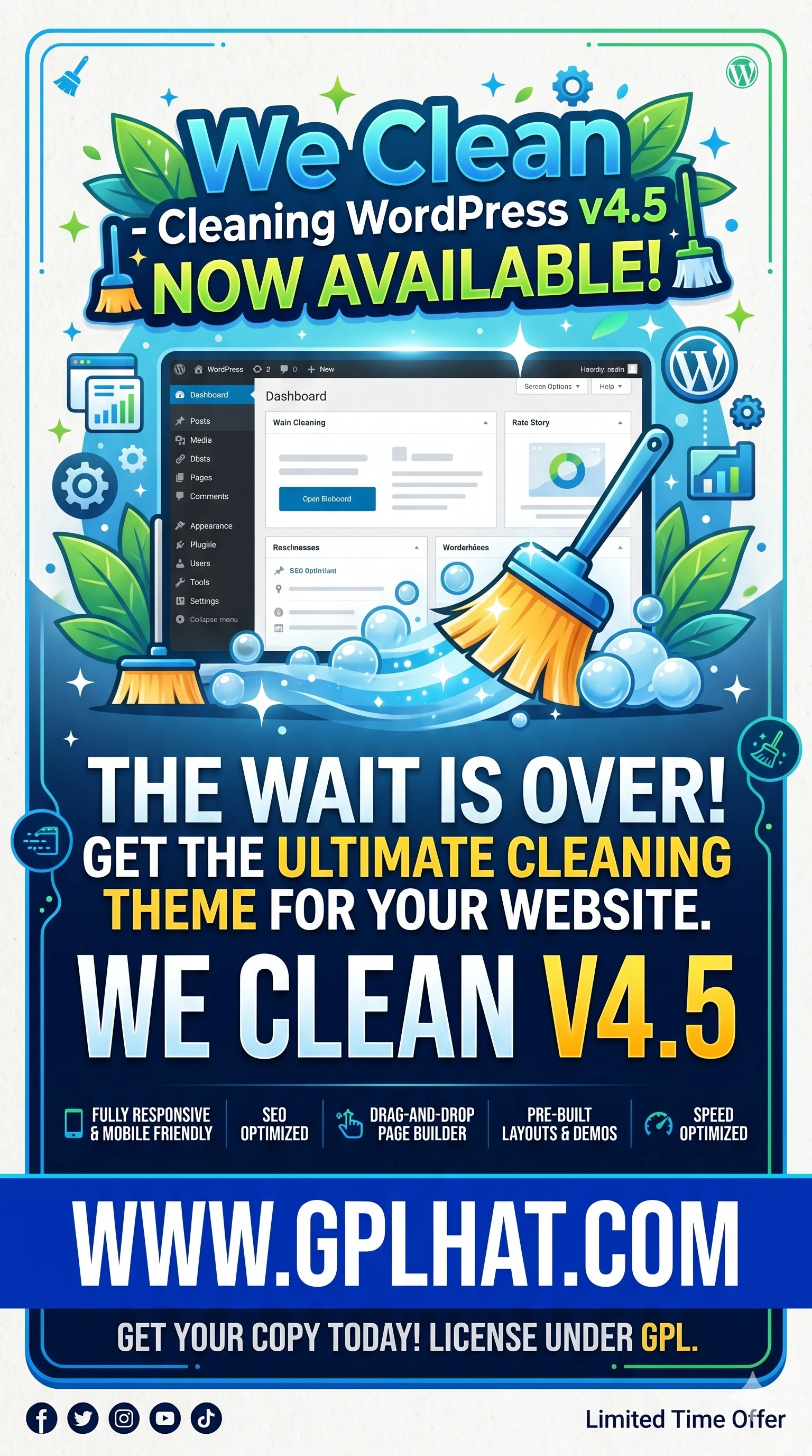 We Clean - Cleaning WordPress v4.5 helps you create a professional website for cleaning and maintenance services. It includes multiple homepage layouts, service pages, pricing sections, and booking features.